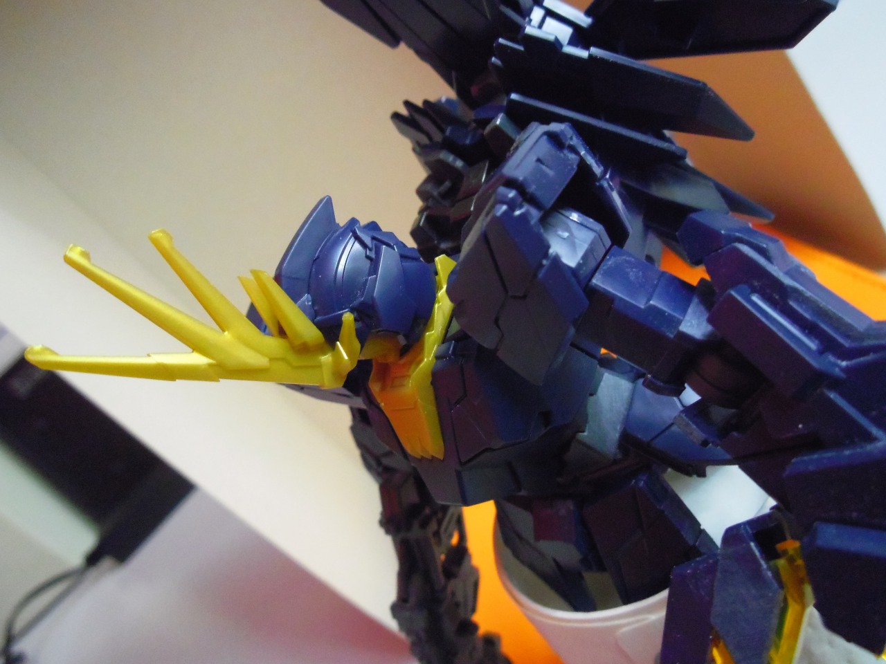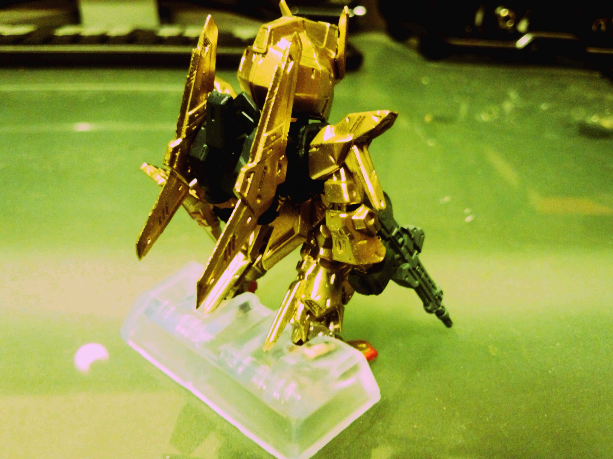 モールド部分はライトグレーでスミイレしようと思ってたのだが参考資料集めている途中で赤でモールドをとったユニコーンがあったのでバンシィはゴールドでも違和感はないかなと判断しゴールドで