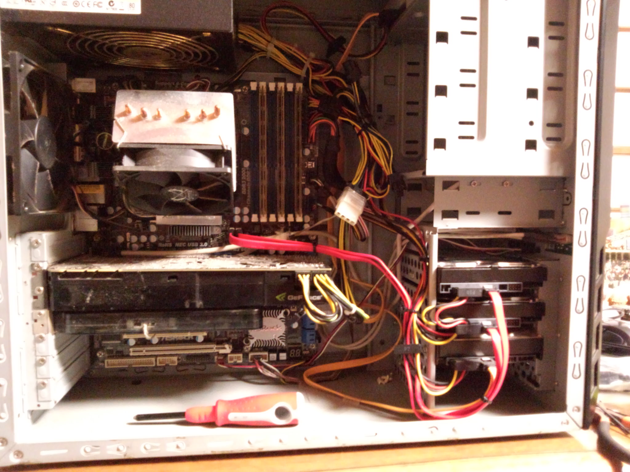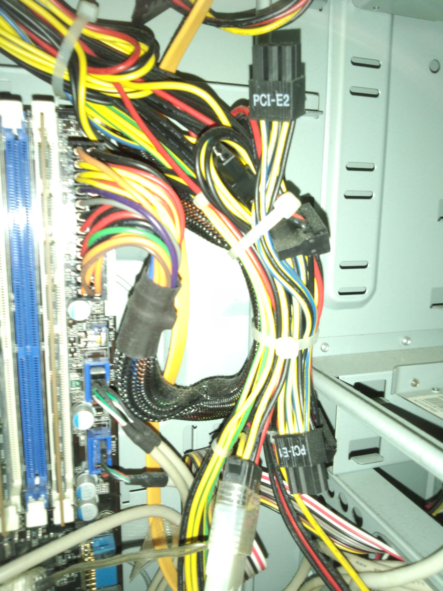100番インシュロックでケーブルを部分抱縛してできる限りキレイに仕上げてきた(他人のPCなんで)