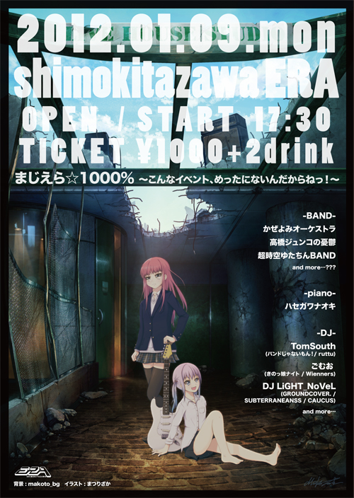 来年2012年1月9日(月) 下北沢ERAで催されるアニソンイベント