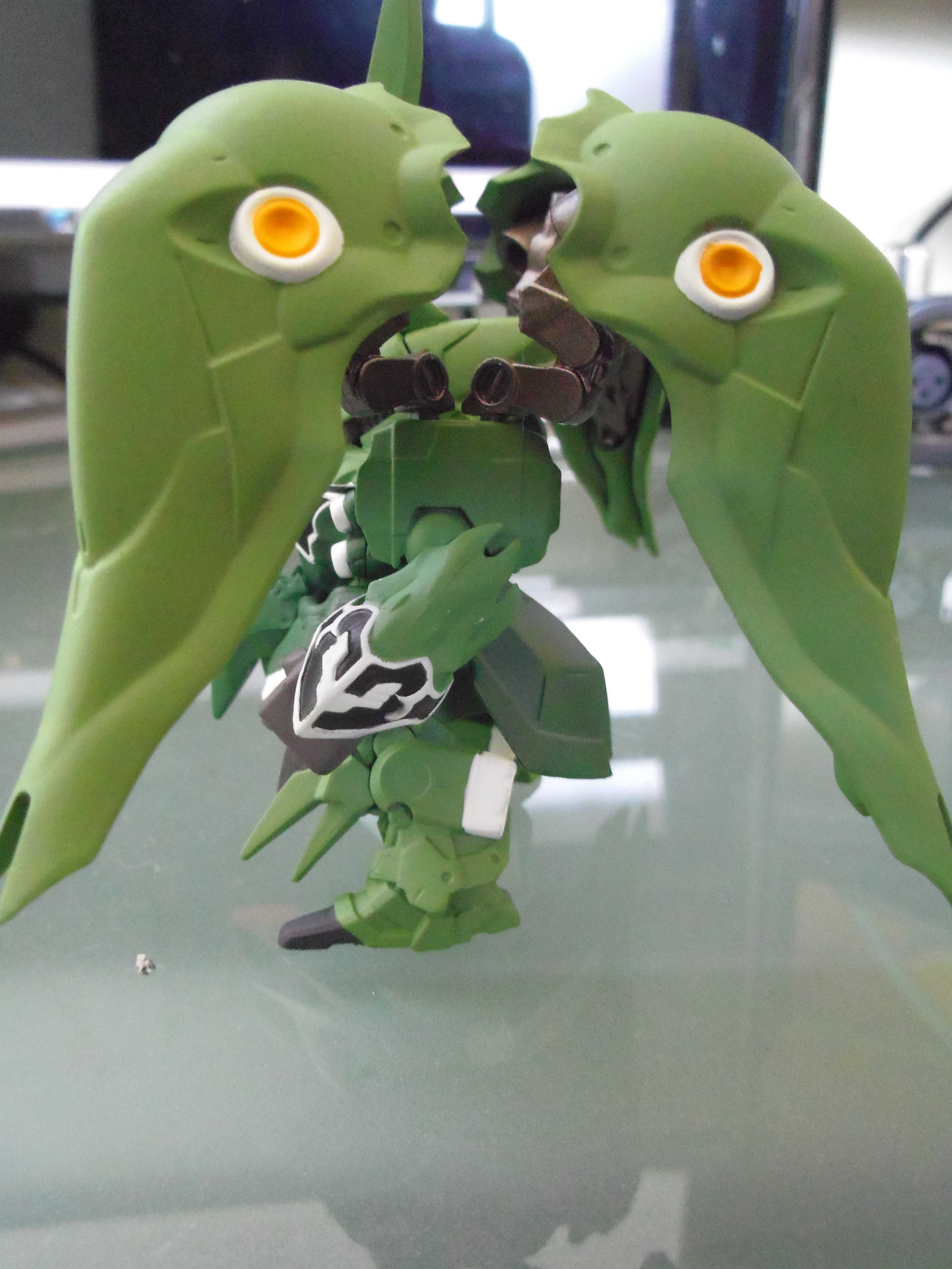 バインダーは2枚になりファンネルは全部撃ち落されコックピットは剥き出し胸部メガ粒子砲も2門破損、片腕がなくなり片足はフレームが露出