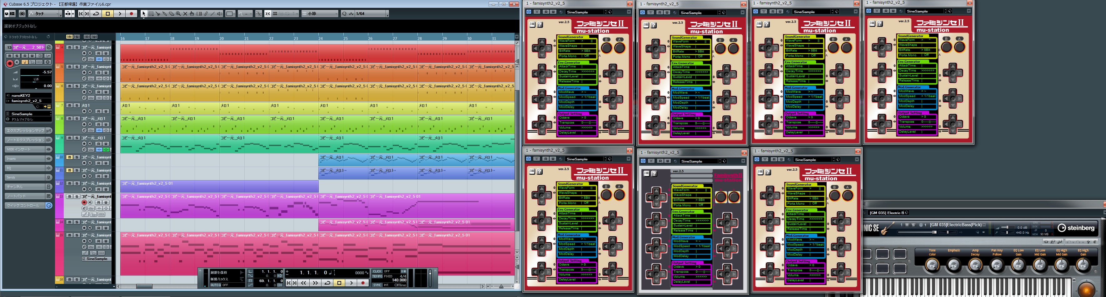 8bit,4bitフォーマットのシンセを何十台も同時再生させるわけなのだがよく似た矩形の音源でいくつもの和音を