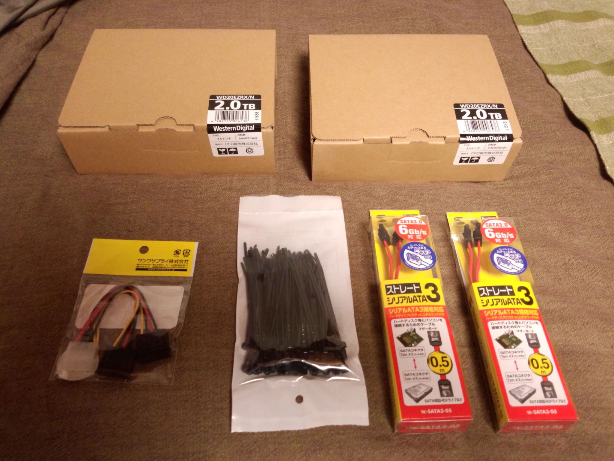 今回は単純にエロファイル倉庫用に2TBのHDDを2台 sata3のケーブルを2本