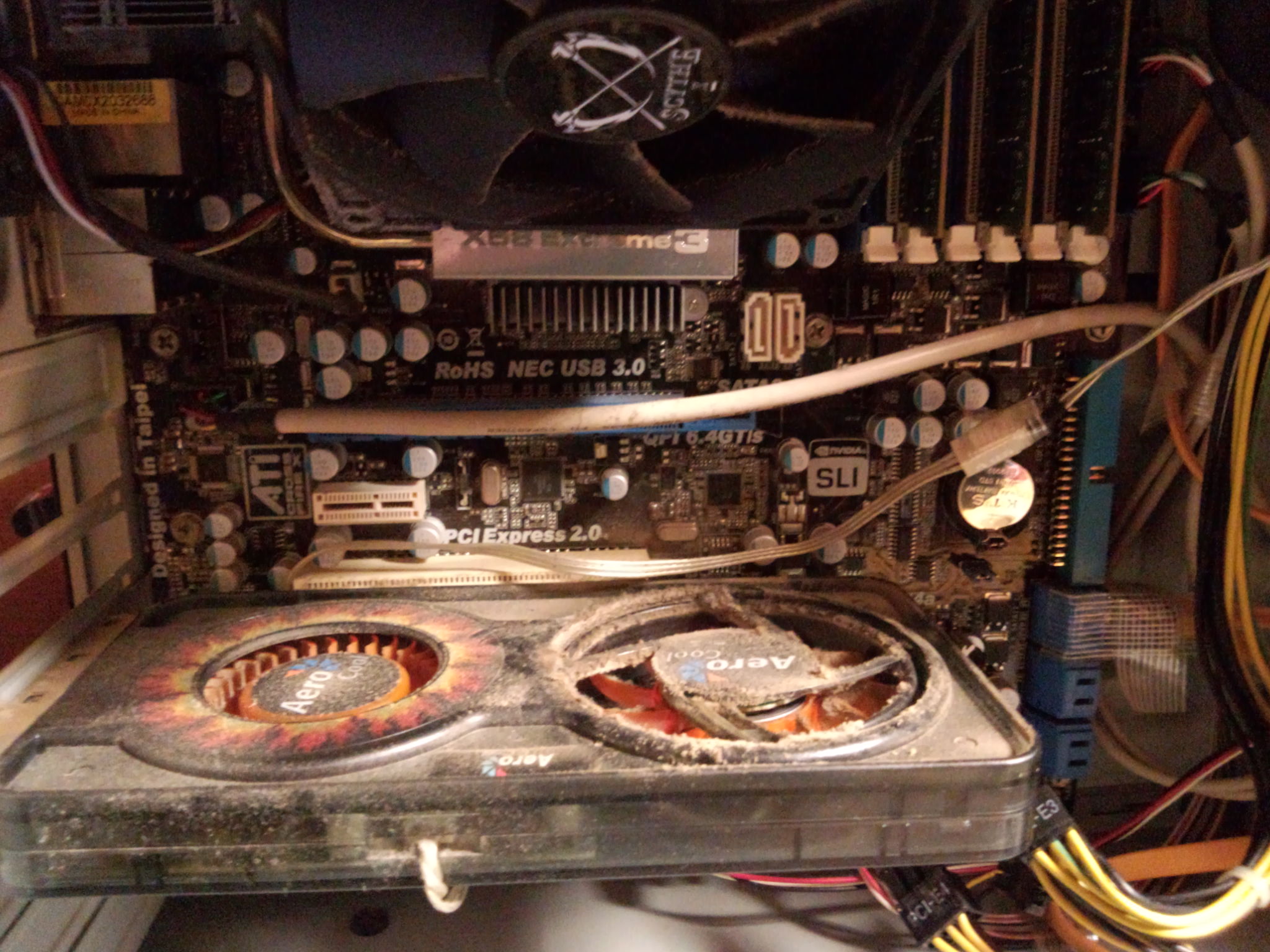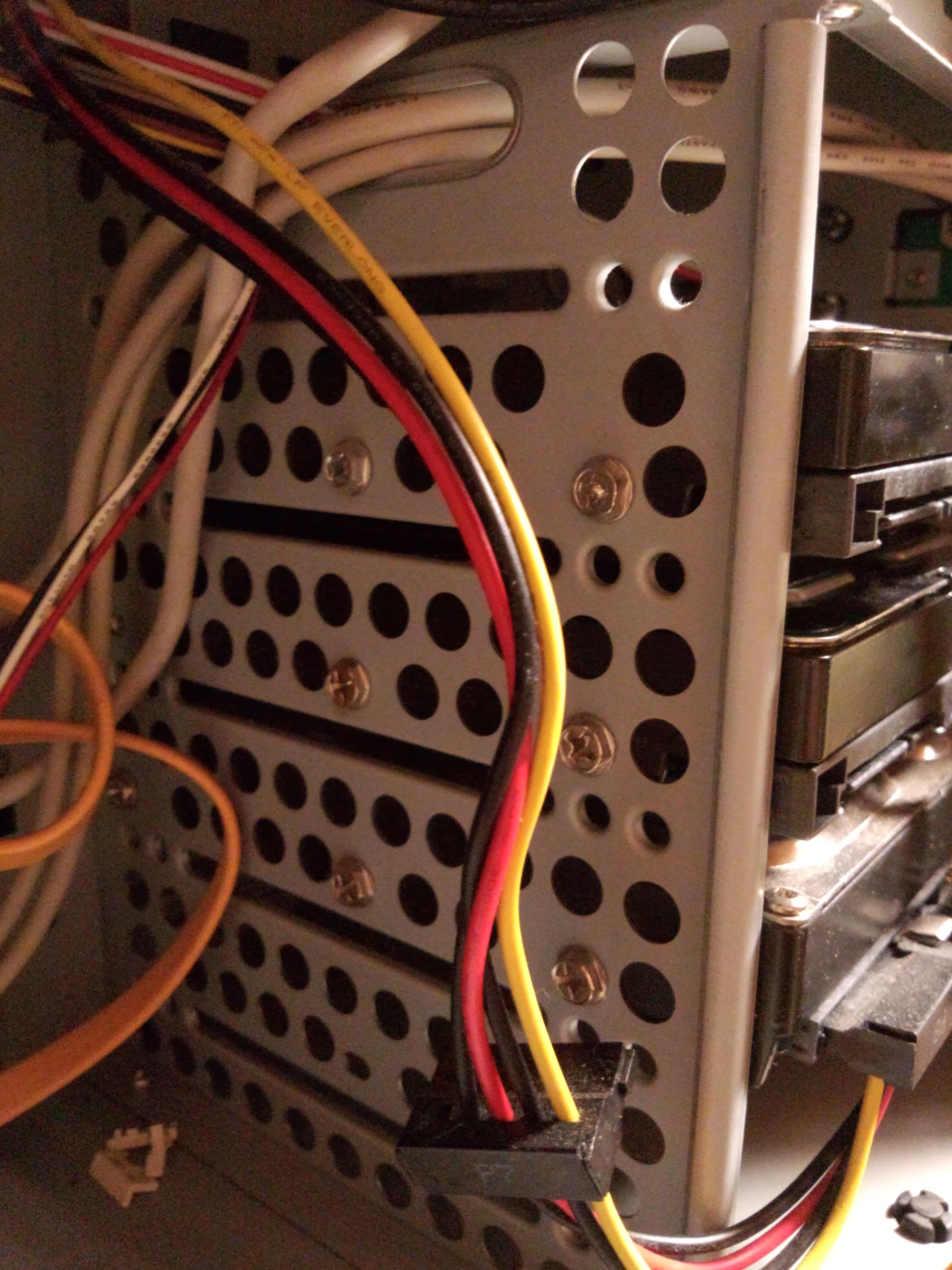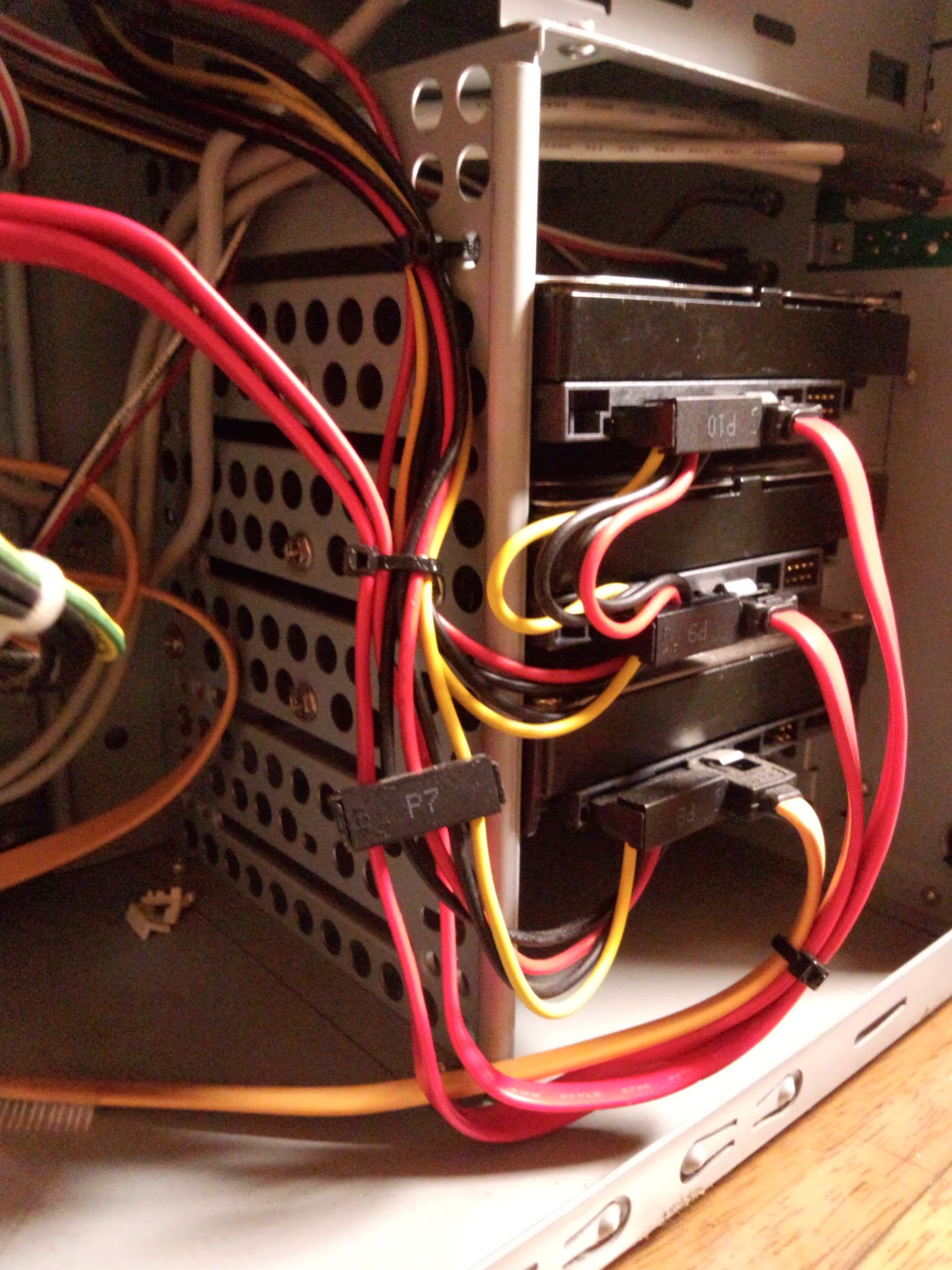 100番インシュロックでケーブルを部分抱縛してできる限りキレイに仕上げてきた(他人のPCなんで)