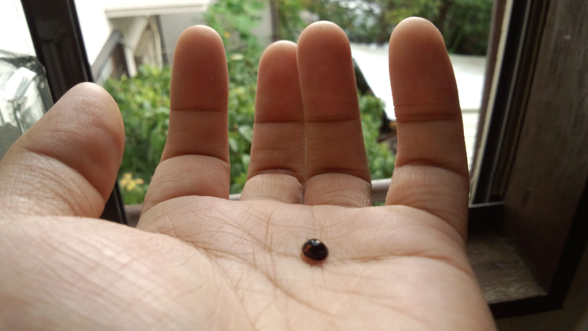 それとさっき窓辺でナナホシテントウムシを捕まえた。