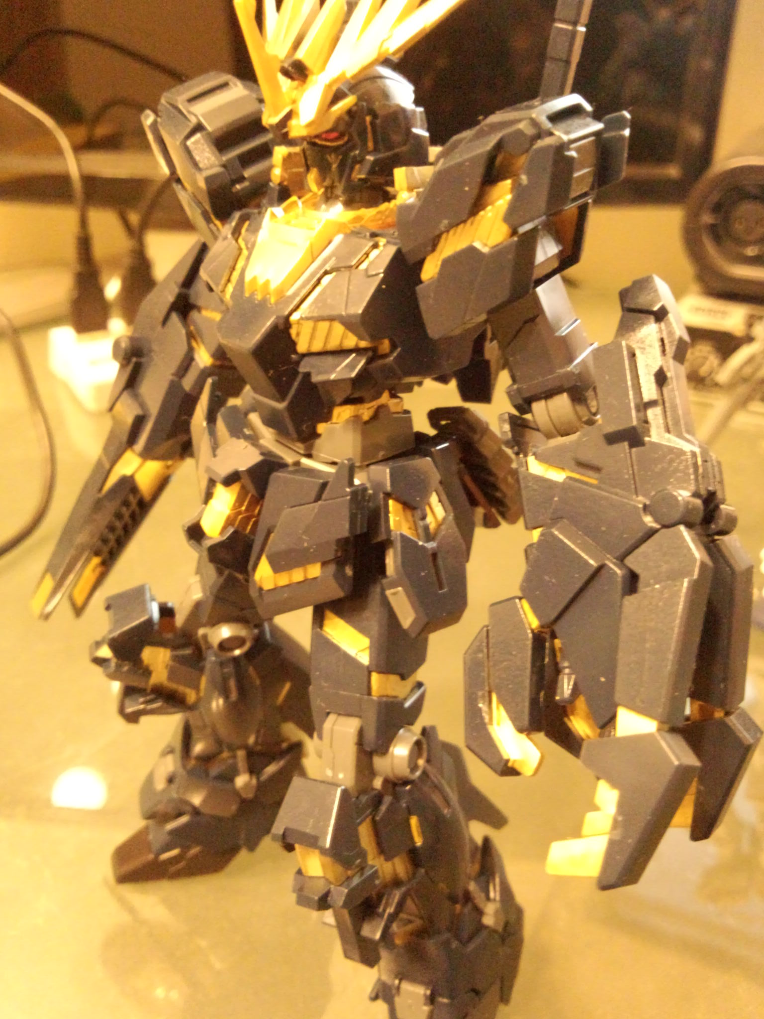夜だと部屋の明かりの色にサイコフレームが溶けるようなので昼間のサイコフレーム