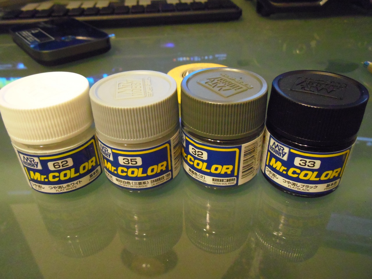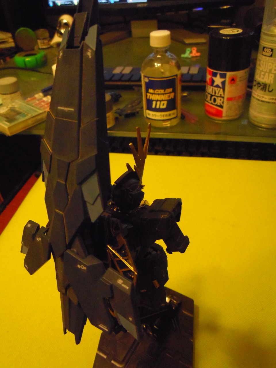 マスキング部分に塗料が浸透するのを防ぐために溶剤を薄く、濃い目で仕上げたのでムラがパナイ