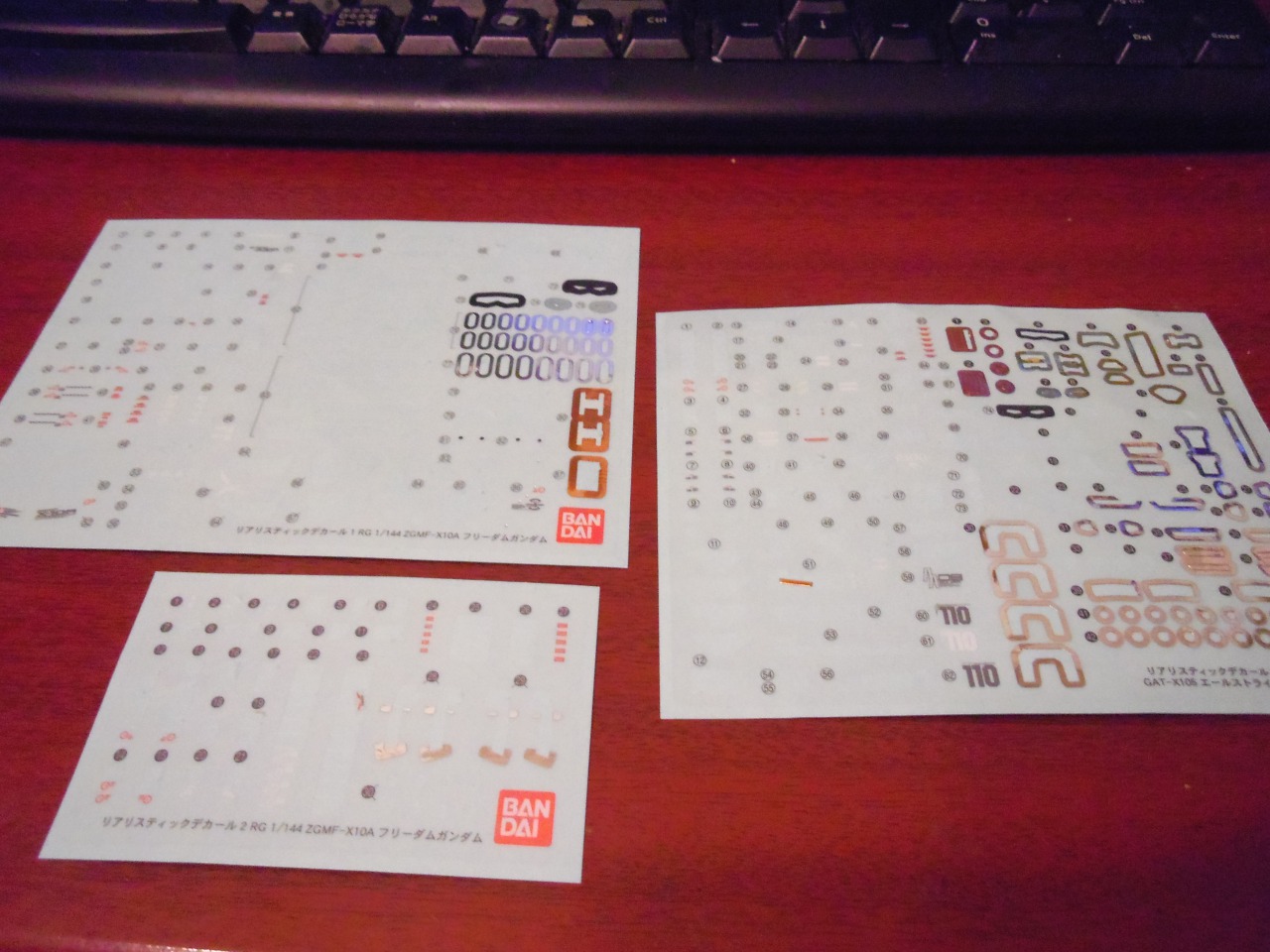 調色の参考にとだいたいの模型の取り説は捨てずにとってあるのだがそれと一緒にデカールも大量に余っているのでRGストライクとRGフリーダムのものをはりはり