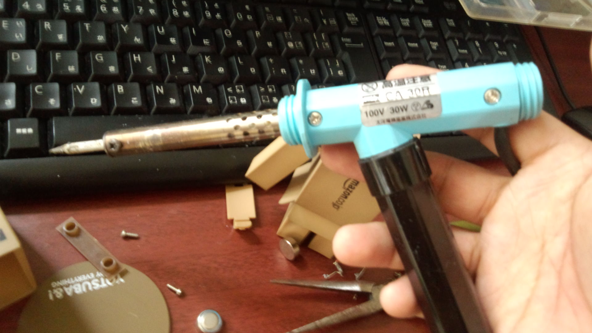 換装するLEDがもとのライトより大きいのでコテで穴の拡張。
