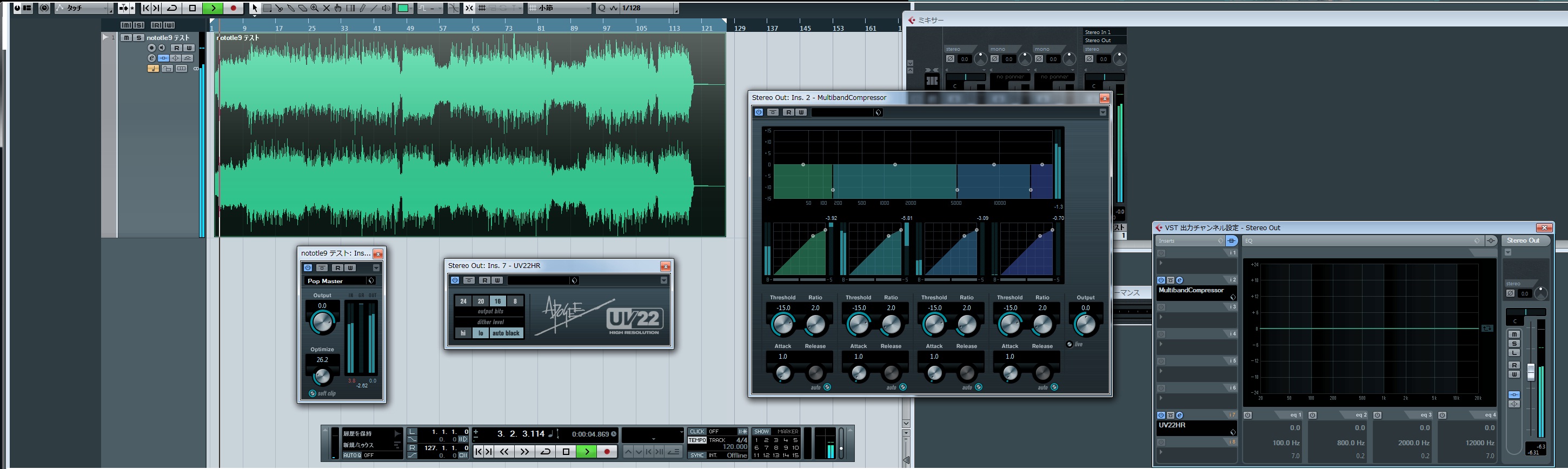 専門書を参照の上、プラグインによる音圧、相位の調整をしてそれを練習用のマスター2mixとしてマスタリングをしてみた結果、物凄い効果が得られた