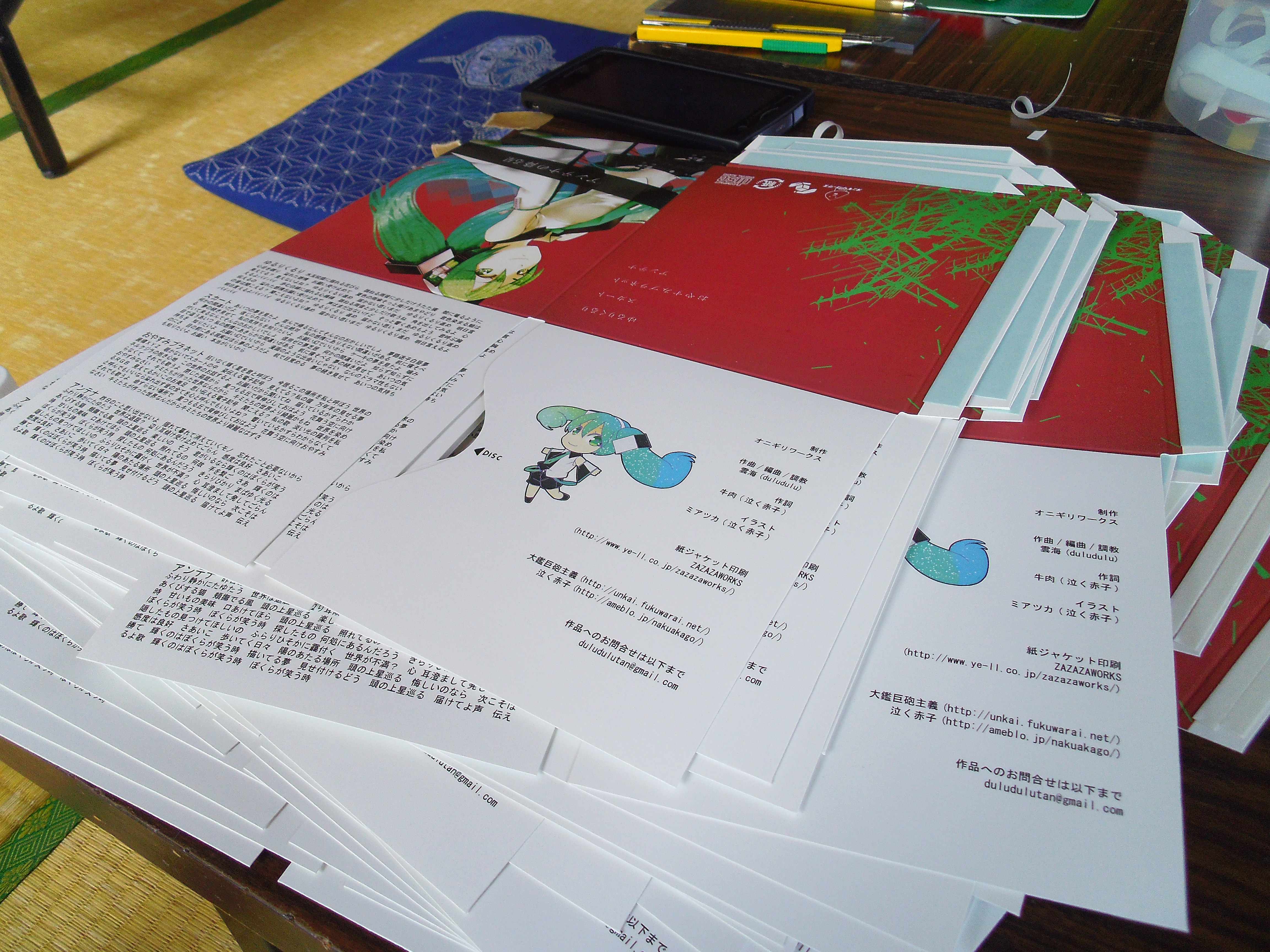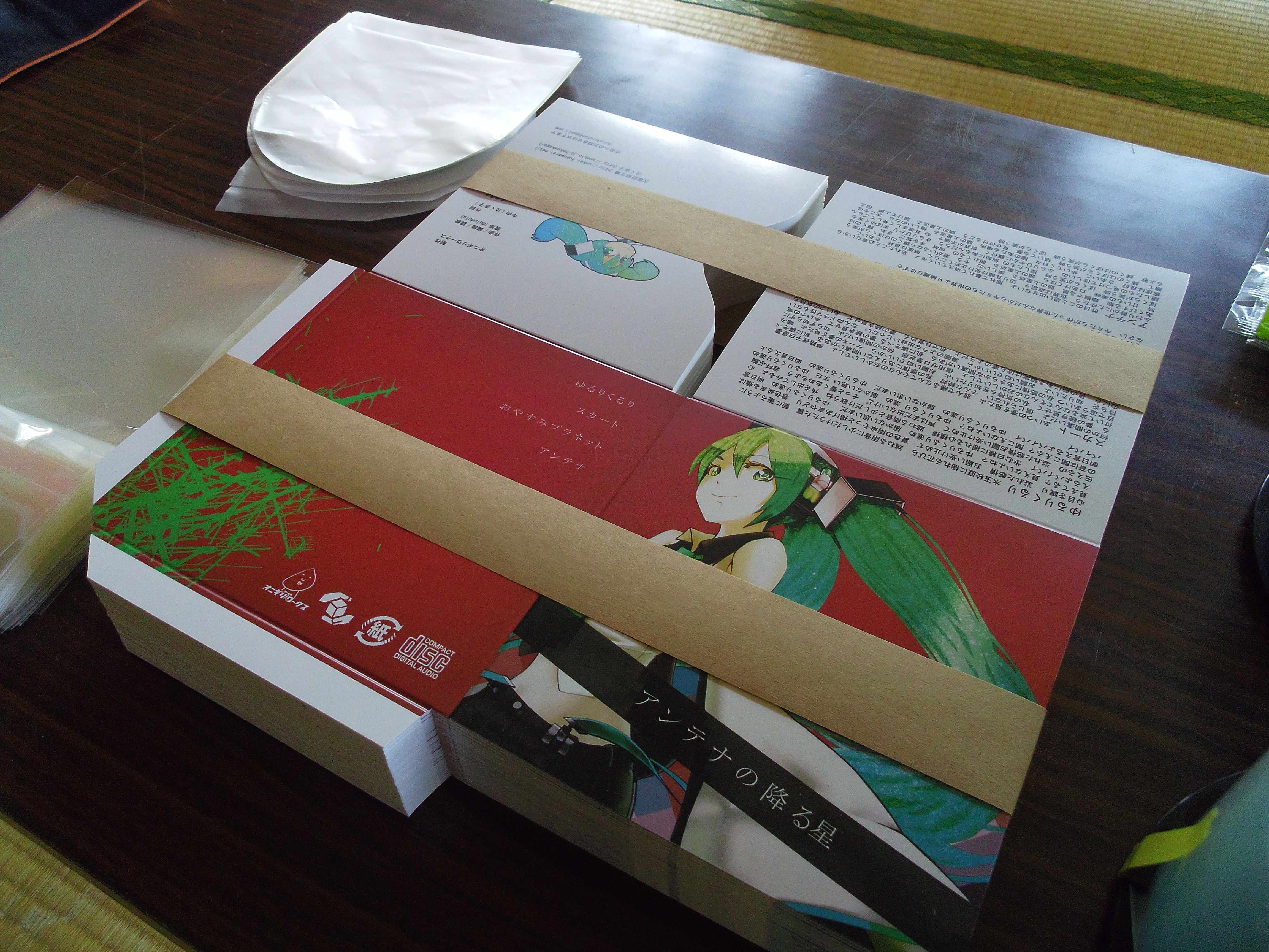 ZAZAZAWORKSに印刷を依頼したCDジャケットが8日午前に届き、9日にオニギリワークスオールスタッフでパッケージング作業を予定