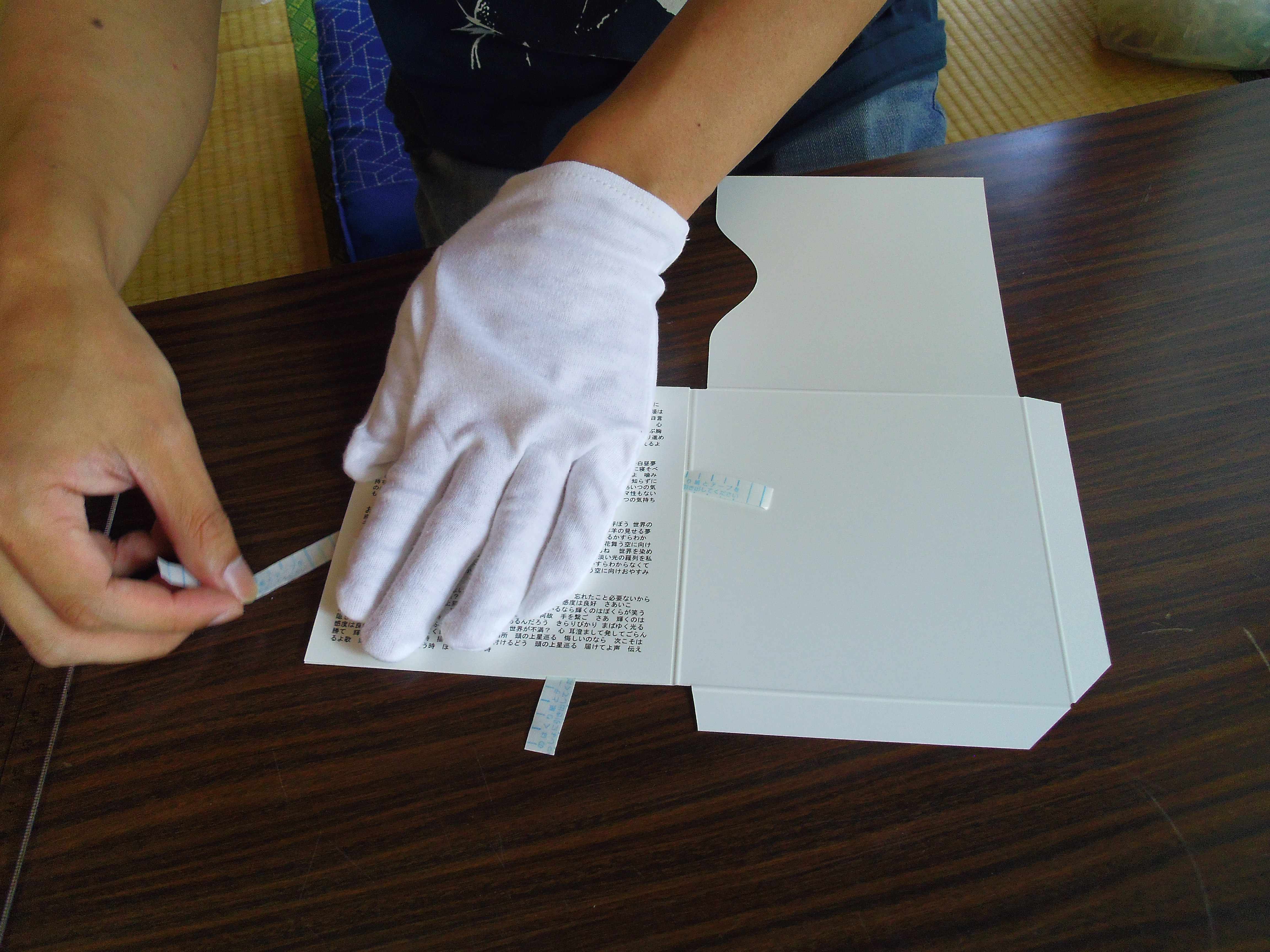 ・糊しろ部分に両面テープを貼る人