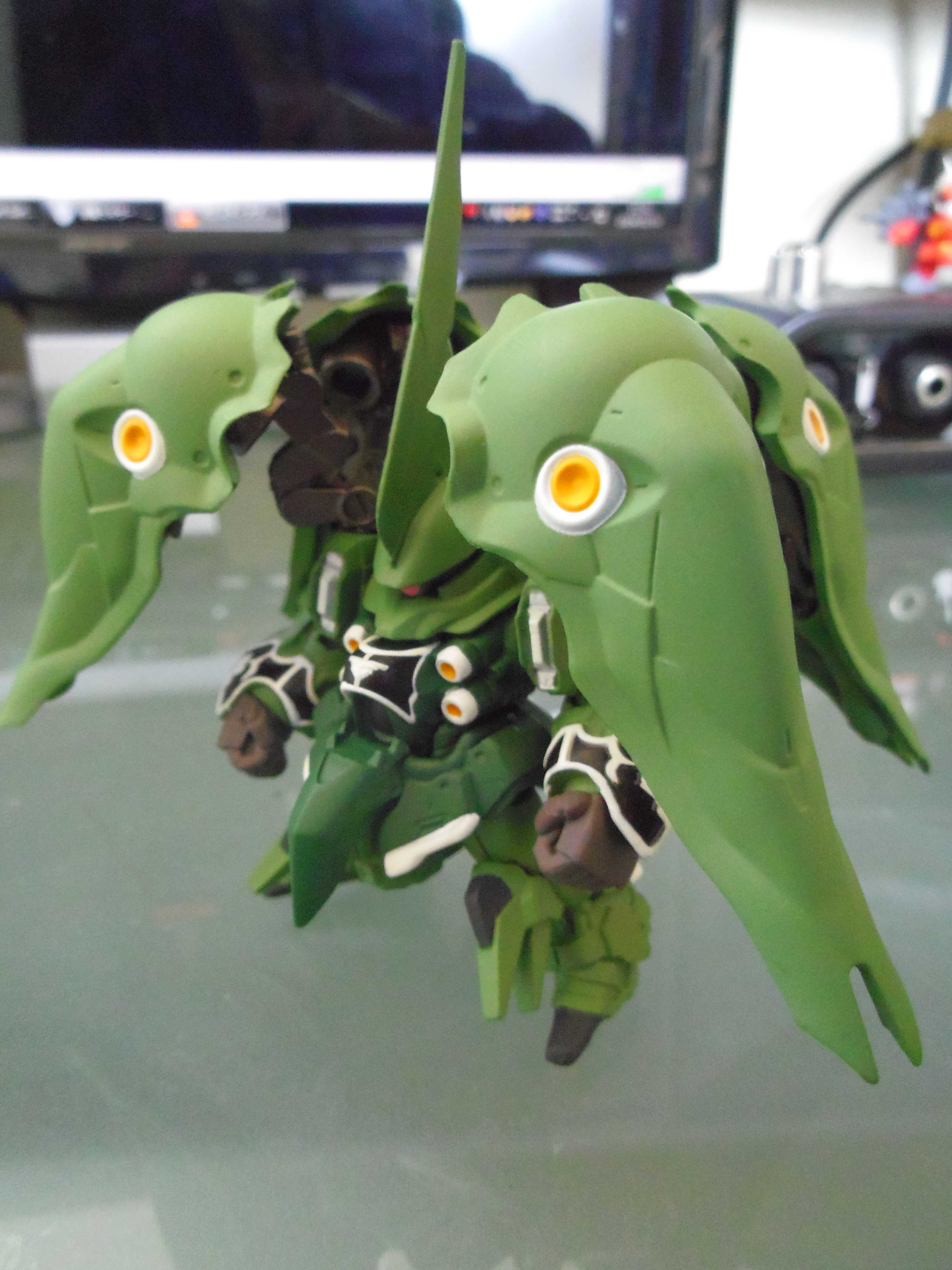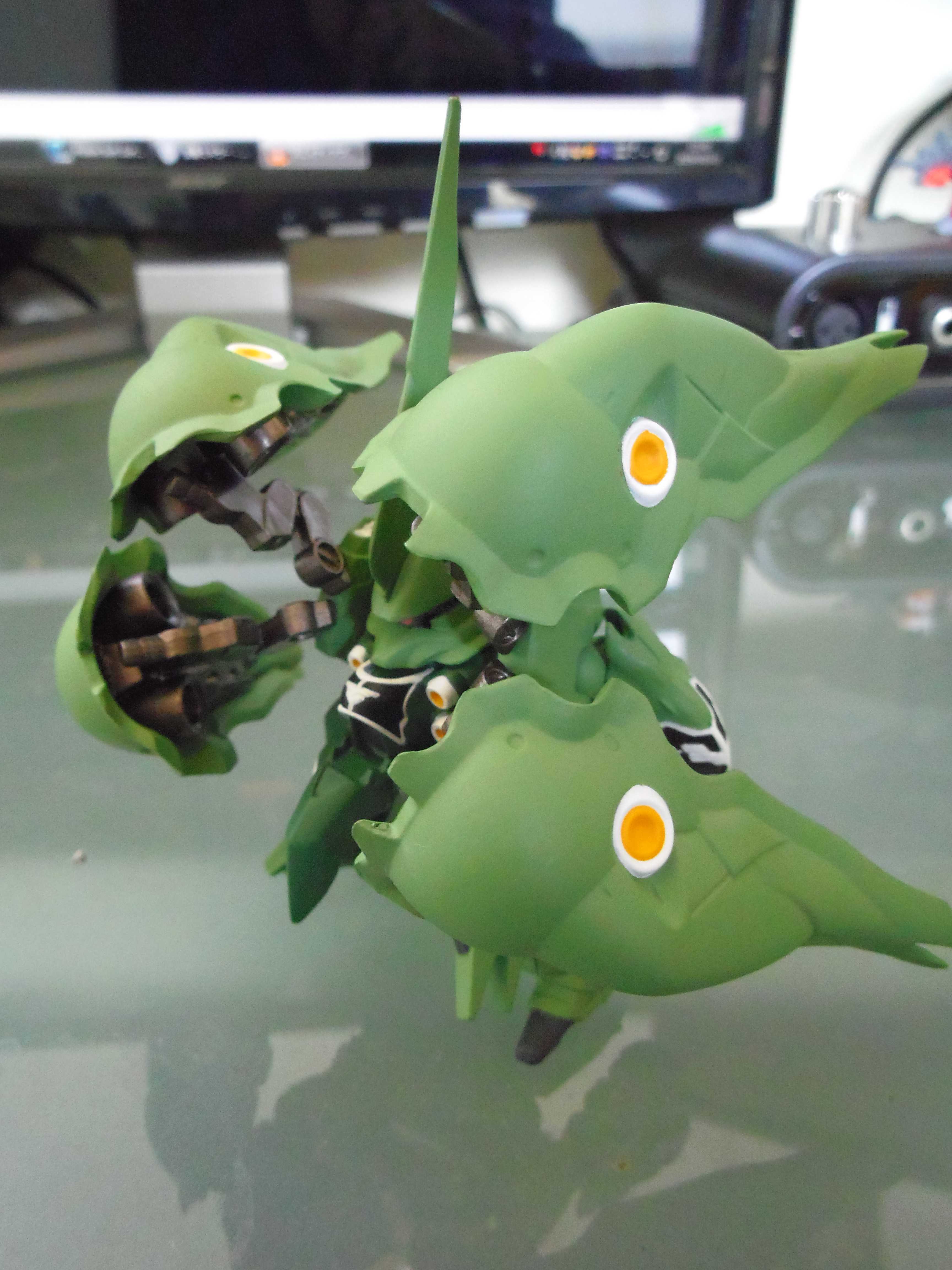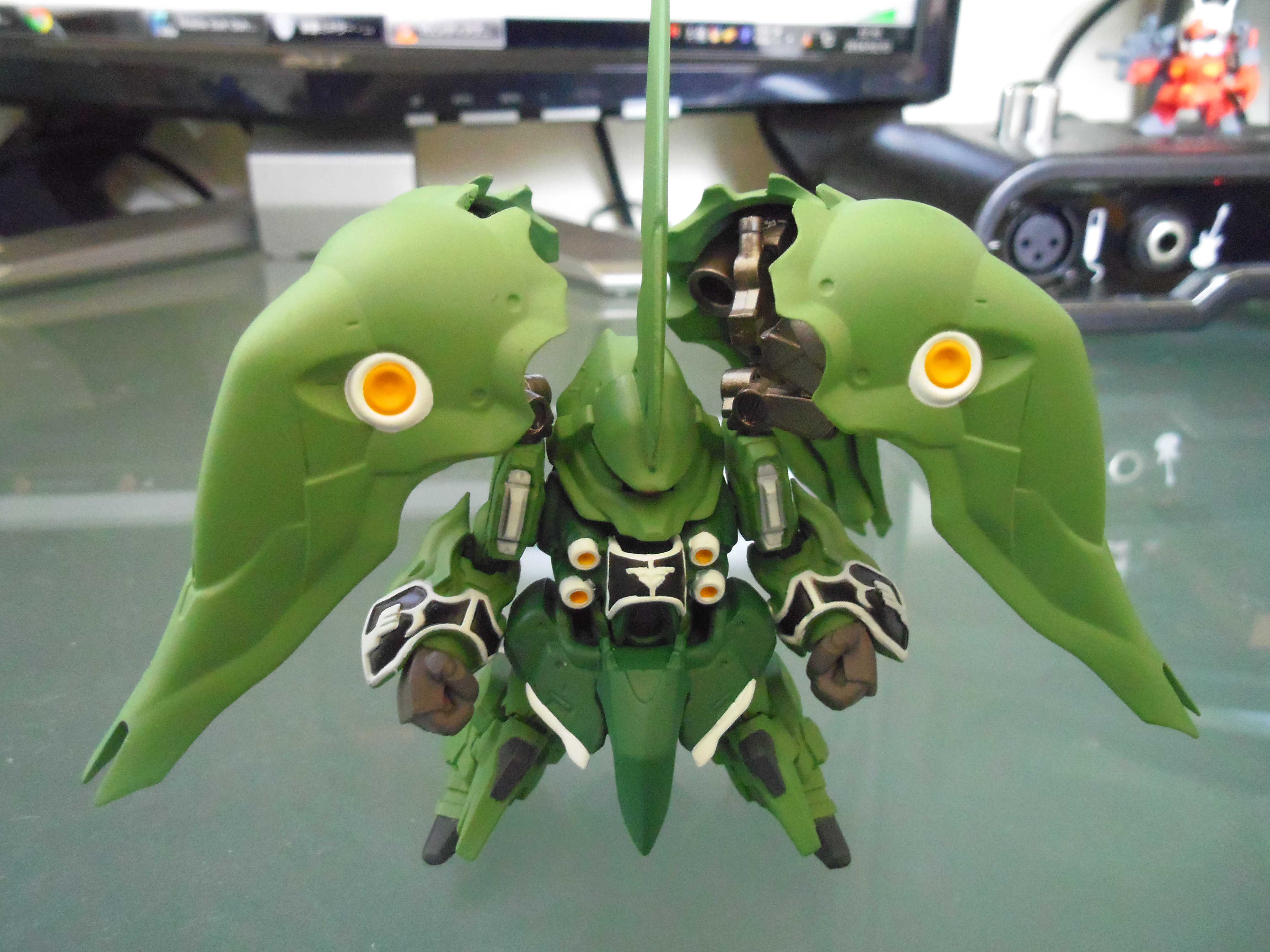 バインダーは2枚になりファンネルは全部撃ち落されコックピットは剥き出し胸部メガ粒子砲も2門破損、片腕がなくなり片足はフレームが露出